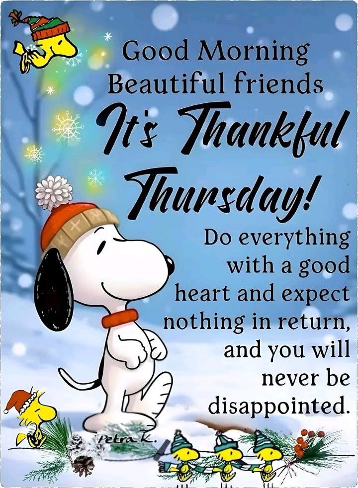 Thankful Thursday terrific souls – good morning. As we welcome this brand new day, let’s be thankful for the blessings God provides in our lives. If we look around, they’re really not that hard to see … hot running water, eyes that see and ears that hear, warm bed, dear souls .. so many. I’ve no doubt we’ll find way more than we thought. You are worthy, wanted and treasured. May your day be filled in peace, ease, calm, care, grace, wisdom, compassion, strength, health, hope, joy and gratitude. Have a wonderfully blessed day! 😊💕🙏🏻🕊️❄️