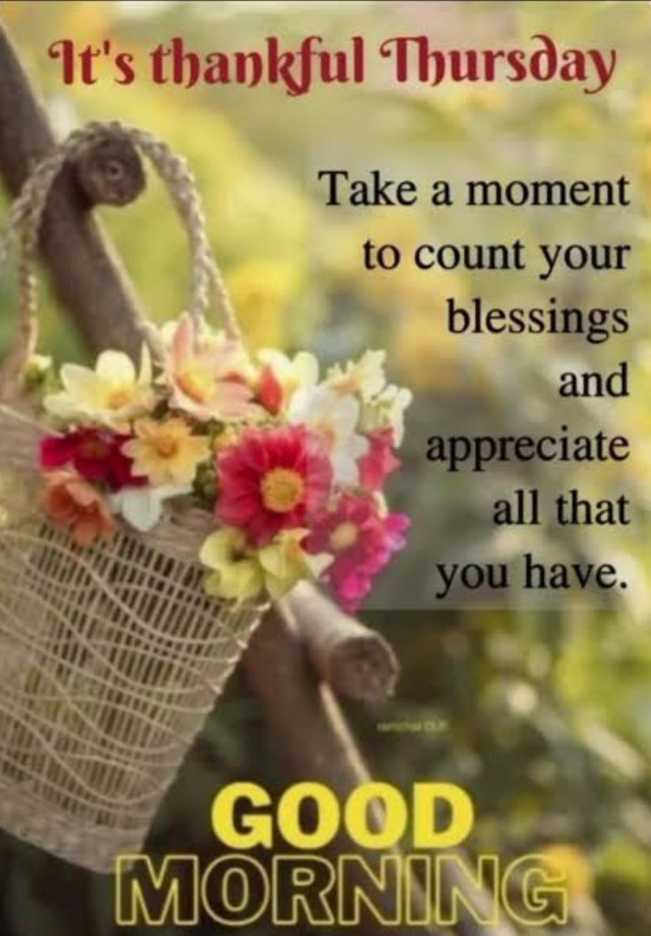 Thankful Thursday terrific souls and gooood morning. Welcome to this new day!!!! Let’s hold gratitude for the blessings in life from the moment we awaken until we rest our head at night. I’m thankful for so many things; God is good. Know you are worthy, wanted and treasured. May God bless you and fill your day in His peace, ease, calm, care, patience, grace, wisdom, compassion, strength, health, hope, gratitude, gentleness, mercy and joy. Have a tremendous day! 😊💕🙏🏻🕊️🌼