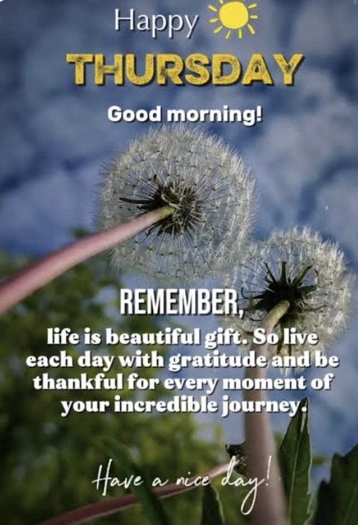 Thankful Thursday tremendous souls … good morning. As we begin this last day of April, let’s hold gratitude for the blessings that fill our lives. I’m so thankful to the Lord for so so much! Take time to think of a few things you’re grateful for today. It does a soul good. Know you are are worthy, wanted and treasured. May your day be filled in peace, ease, calm, care, patience, grace, compassion, strength, health, hope, gratitude and joy. Have a blessed day! 😊💕🙏🏻🕊️🌸